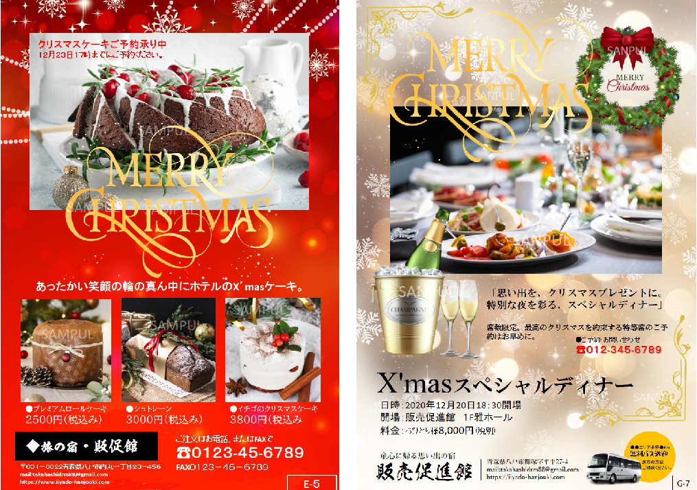 宿泊の夕食を「クリスマスディナー」にすると、1人あたり1,500〜3,000円ほどアップが可能。クリ スまでの数日間は、夕食をチョイス制にしてもいいですね。 - 地元需要の取り込み