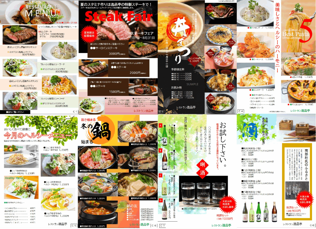 どんな雰囲気か、少しだけご紹介します。●サンプルはC-レストランMENU(8種類)