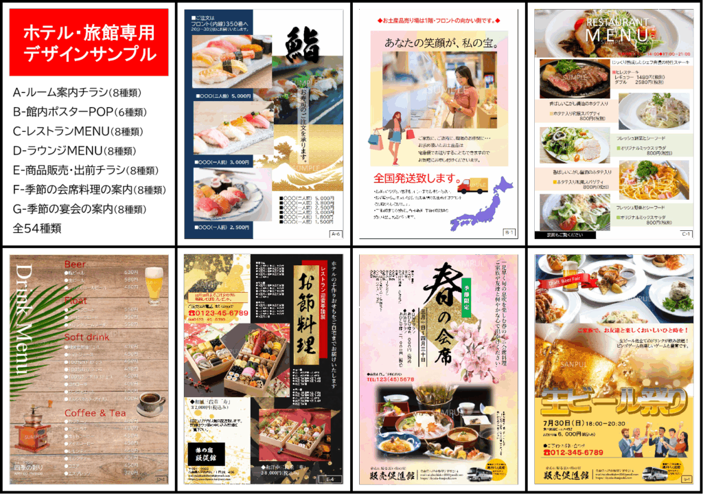 ホテル・旅館専用 デザインサンプル54種類を無料進呈